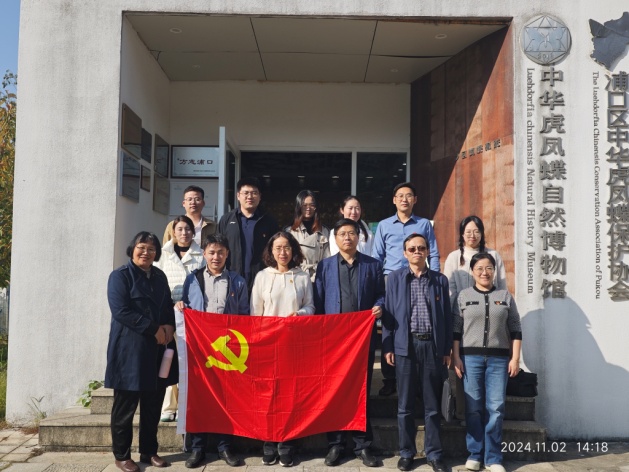 下午,双方党员齐聚浦口区老山脚下的中华虎凤蝶展馆,开展了一次意义深远的科普学习活动。展馆依山而建,环境幽雅,不仅为参观者提供了一个近距离接触自然、深入了解昆虫世界的平台,更通过其精心设计的科普教学区,生动展示了中华虎凤蝶生态习性和生命周期。一系列富有创意的昆虫主题产品,如手工艺品、科普绘本等,吸引了大家的驻足观赏。此次参观学习不仅加深了双方党员对昆虫保护重要性的认识,更为后续保护昆虫书籍的撰写和科普馆的建设工作提供了宝贵的思路与素材。