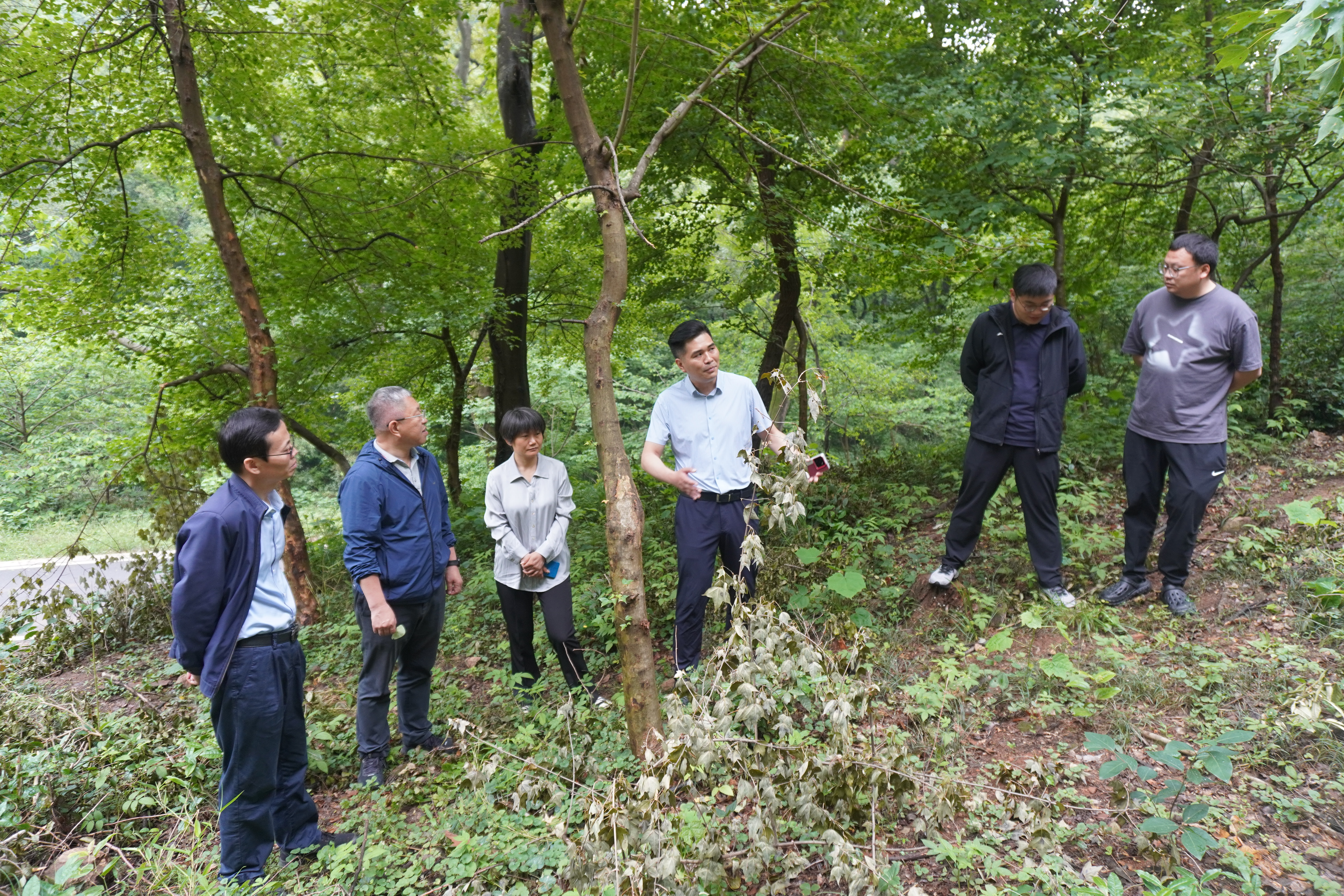 2025年5月16日,21点基本策略 森林保护系教师党支部书记谈家金,系主任郝德君,青年教师代鲁鲁、李同浦,21点基本策略 团委书记、学工办主任梁子瑜共同前往老山林场对接后期即将开展的党团共建项目。
