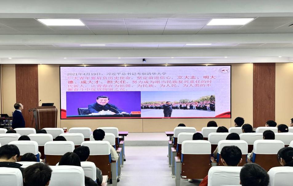 讲座伊始,王华光书记引用2021年4月19日习近平总书记考察清华大学时的重要讲话精神,以"大学生党员的责任与担当"为主题,从"立大志、明大德、成大才、担大任"四个维度,为全体预备党员们带来了一场内涵丰富、思想深刻的专题授课。