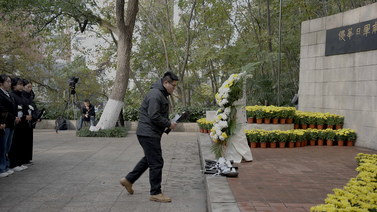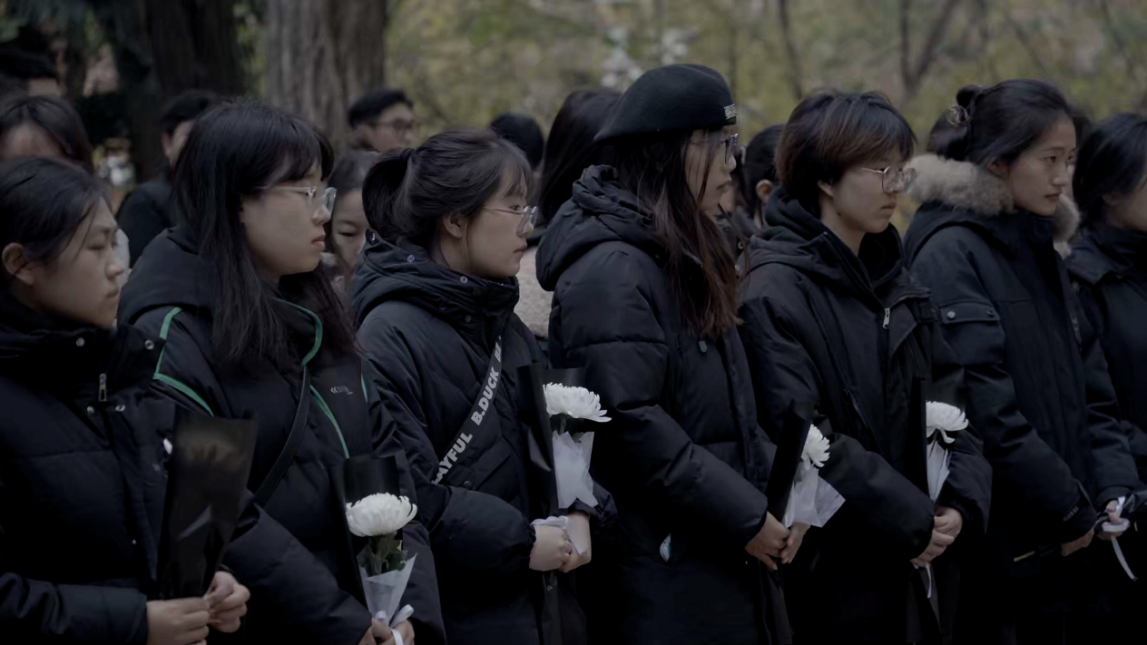 "一九三七,祸从天降,一二一三,古城沦丧。侵华倭寇,掳掠烧杀,尸横遍野,血染长江。""民族觉醒,独立解放,改革振兴,国运日昌。前事不忘,后事之师,殷忧启圣,多难兴邦。"纪念碑前,"碧水青山"传习社的学生代表们高声朗诵《和平宣言》,字字铿锵,气势如虹的诵读声回荡在南京上空,表达了南林学子"勿忘国耻、振兴中华"的爱国情、报国志。朗诵后,部分学生接受中国中央电视台采访。