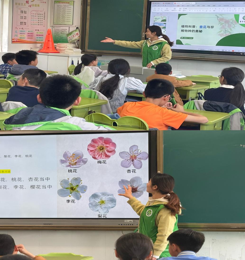 学生志愿者走进教室,为锁金二小六三班小朋友们开展了一堂引人入胜的植物科普。课上以图文形式充分展示春花之间的区别与秤锤树和鹅掌楸珍稀物种的形态特征与生长习性等,帮助小朋友们更好地了解学习植物知识的方法。内容深入浅出,教学互动积极,小朋友们的热情让科普活动更上一层楼。
