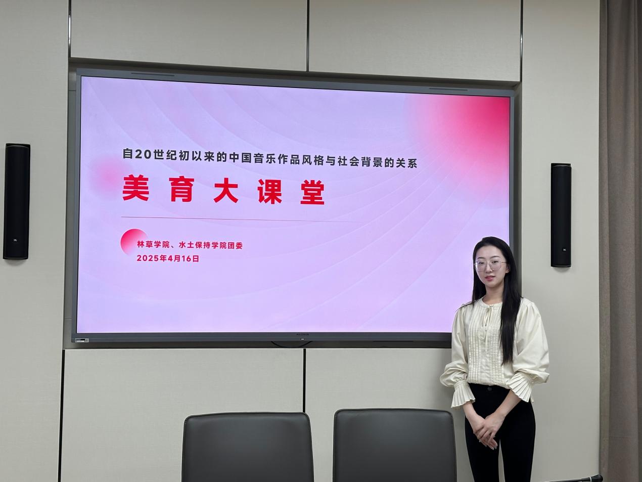 4月17日下午,21点基本策略 部分共青团员齐聚林学楼1316会议室,共同聆听22级辅导员韩沛益老师主讲的美育大课堂。韩老师以"20世纪初以来的中国音乐作品风格与社会背景的关系"为主线,带领学生透过音符感悟百年家国情怀,在音乐中厚植文化自信。