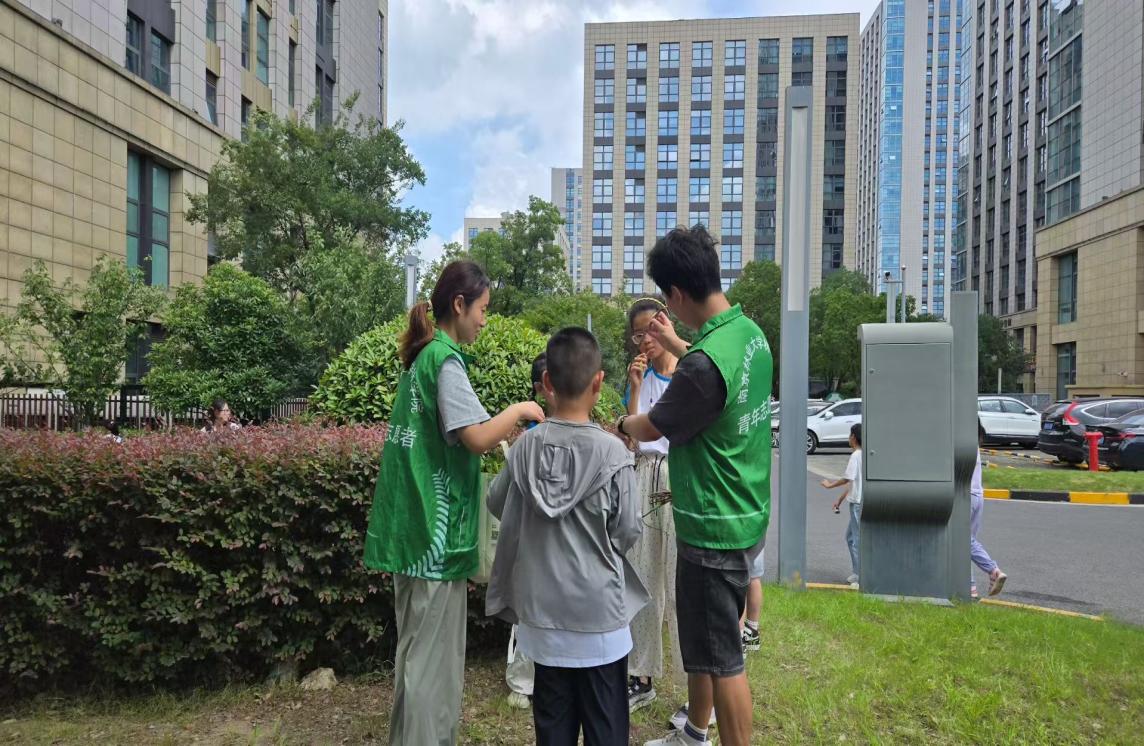 接着的"叶片探索"环节,孩子们手持"植物手册",前往菁英公寓广场及科创城收集不同植物的叶片,为下午的手工环节做准备。