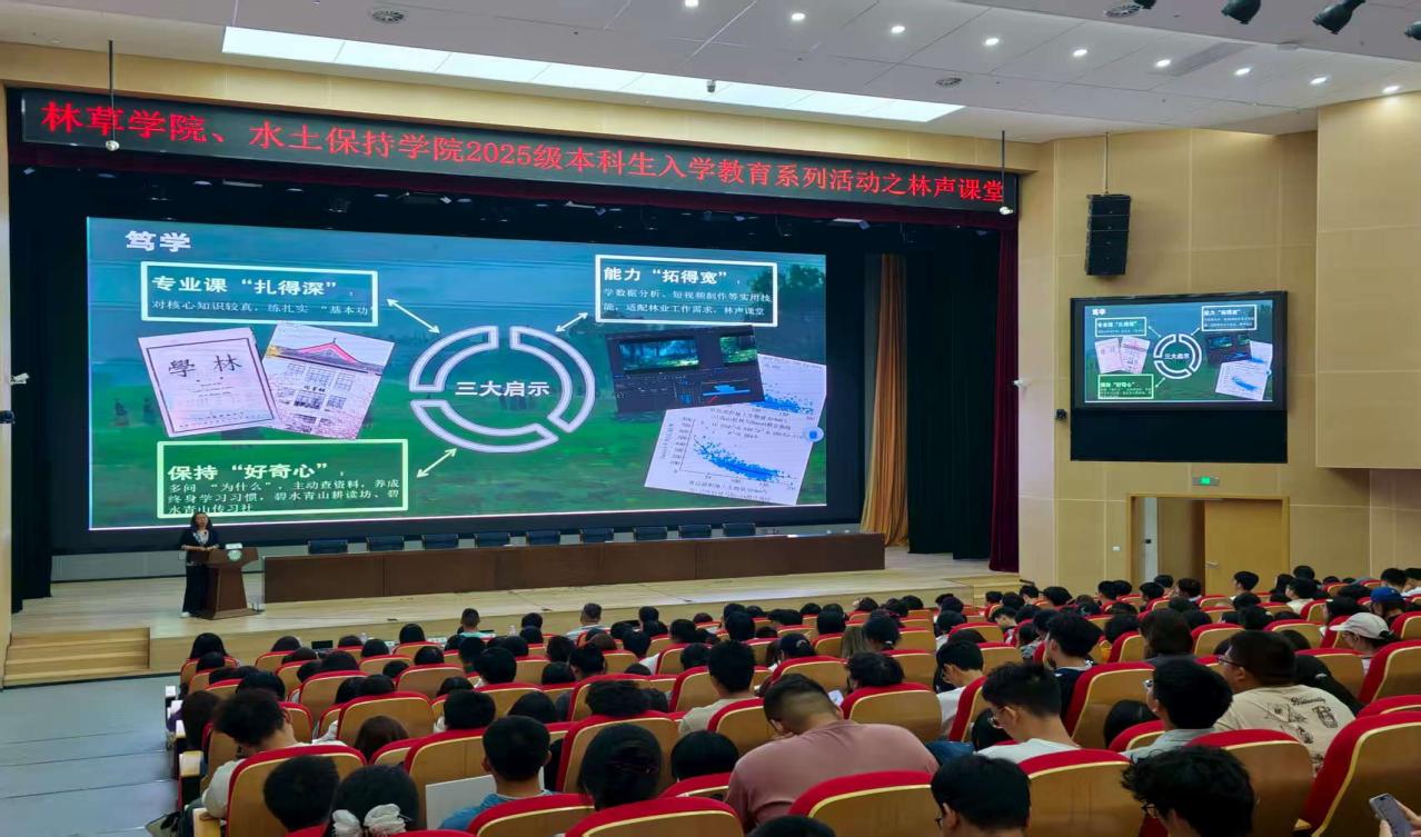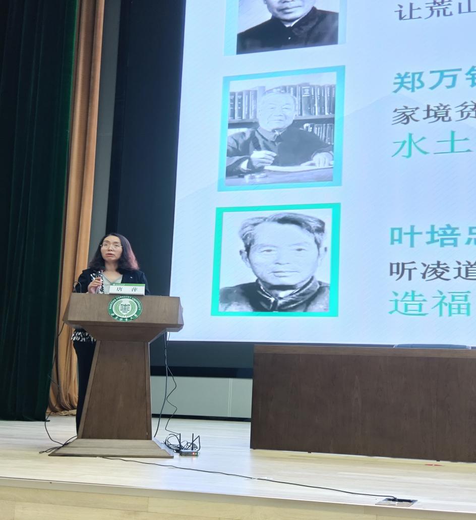院党委书记唐萍"以先辈为镜,走好大学路"为主题开讲"林声课堂"。唐书记围绕我国近代林业奠基人陈嵘、郑万钧和叶培忠三位学者的事迹,深入阐释了南林"为了绿水青山"的办学初心和精神传承。通过生动的事例和珍贵的影像资料,新生们对学校的历史文化底蕴有了更深刻的理解,增强了归属感和自豪感。
