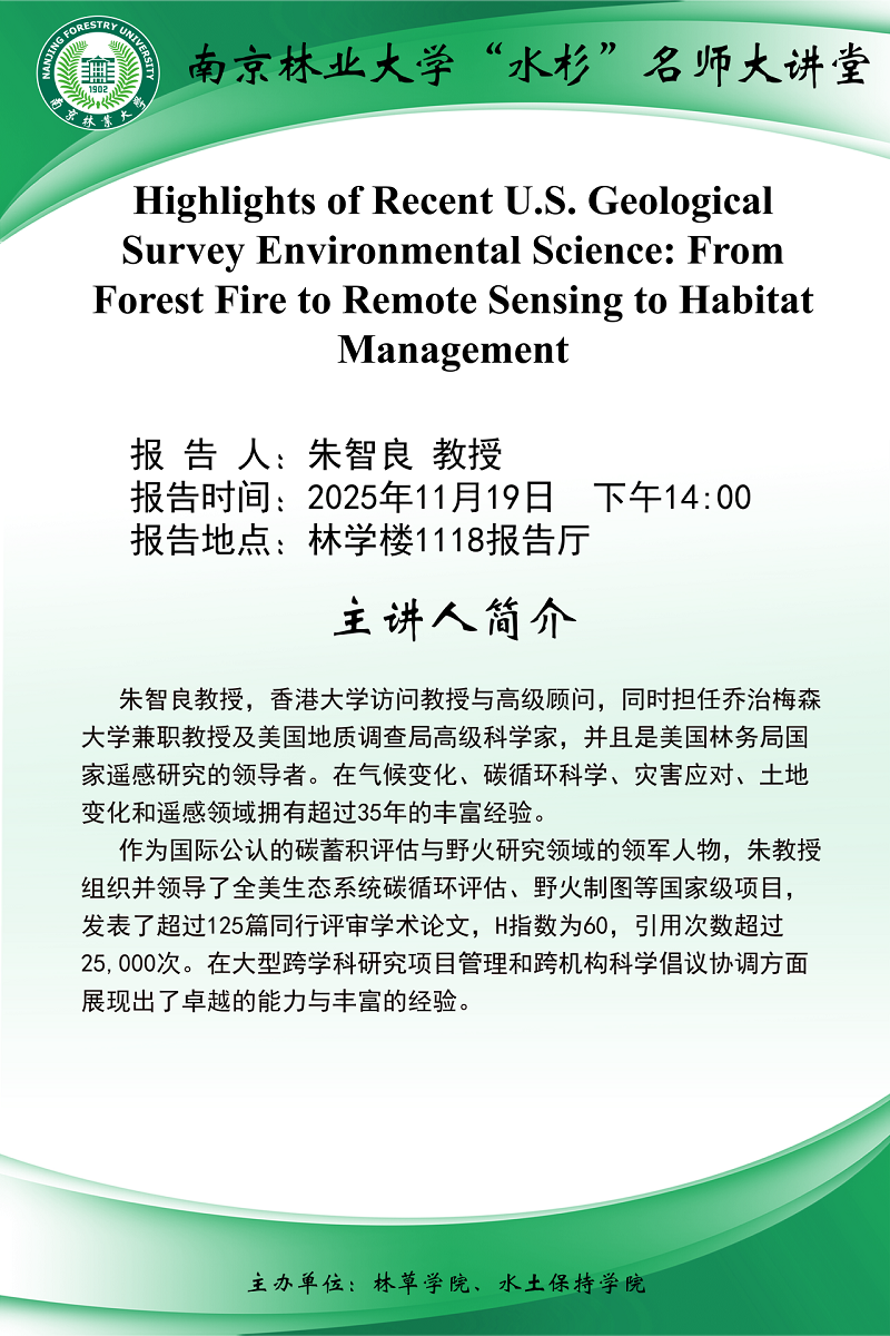 “水杉”名师大讲堂|Highlights of Recent U.S.GeologicalSurvey Environmental Science