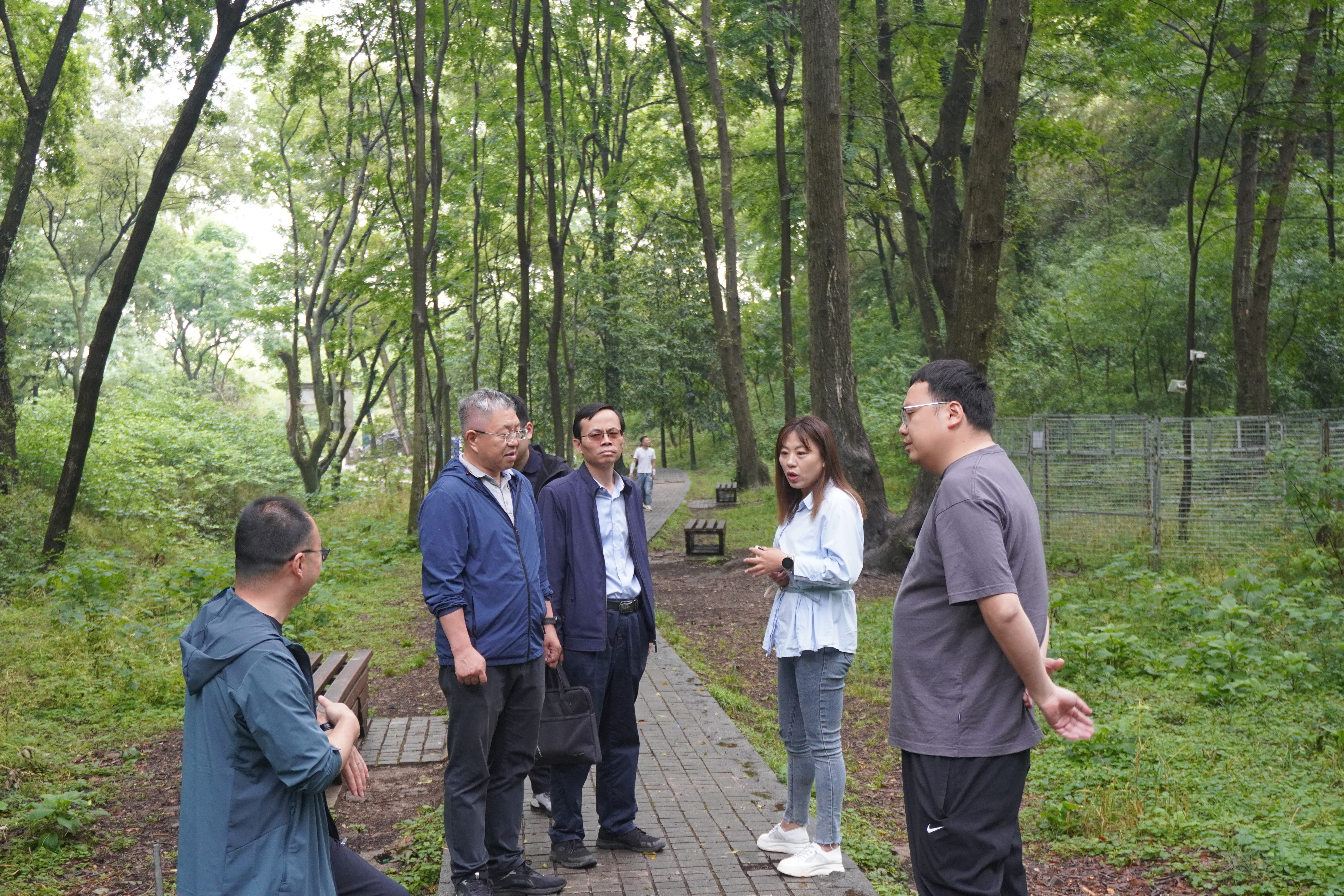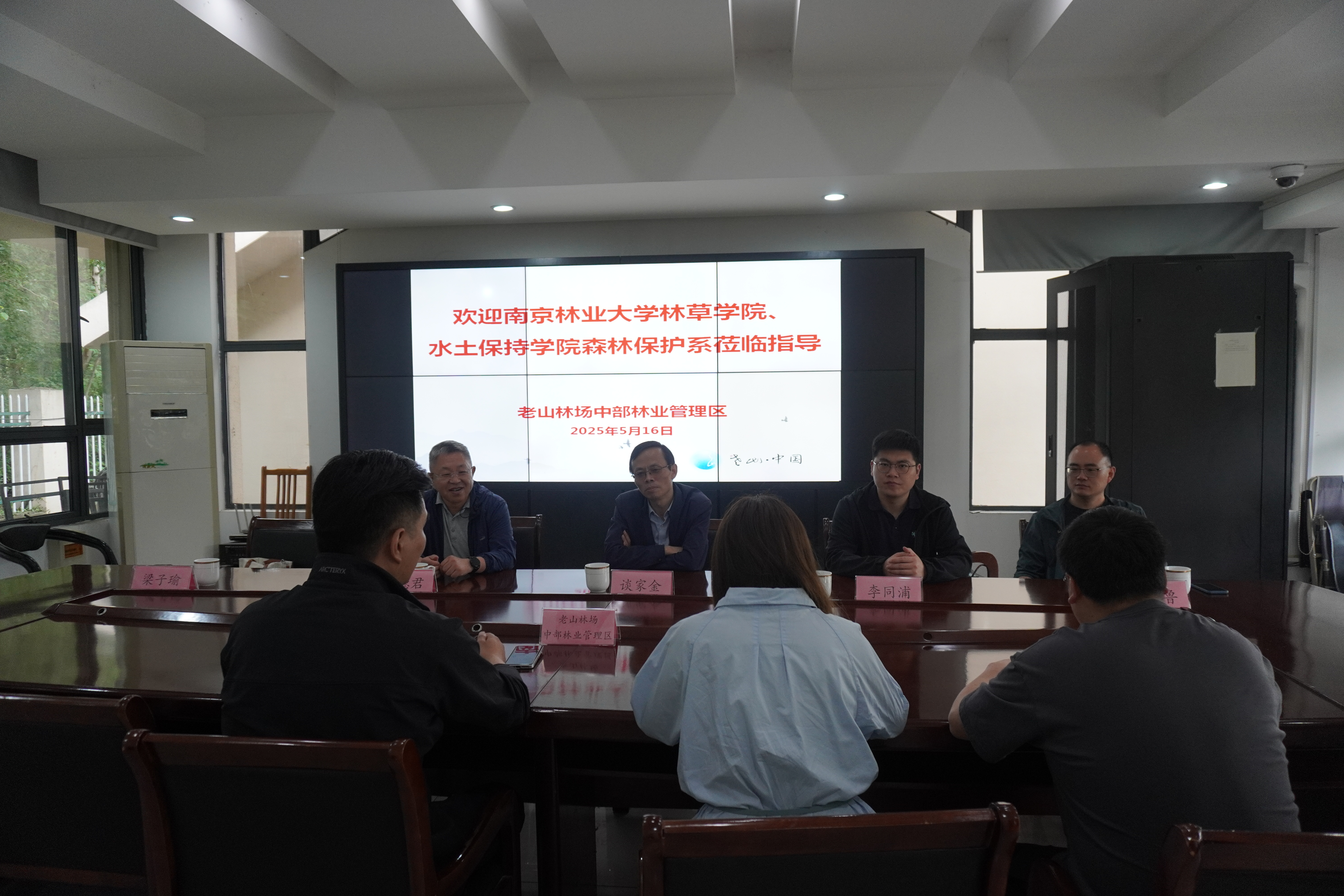 2025年5月16日,21点基本策略 森林保护系教师党支部书记谈家金,系主任郝德君,青年教师代鲁鲁、李同浦,21点基本策略 团委书记、学工办主任梁子瑜共同前往老山林场对接后期即将开展的党团共建项目。