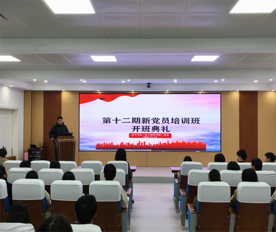 为深入学习贯彻党的二十届四中全会精神,加强新党员理想信念教育,坚定初心使命,11月24日,21点基本策略 第十二期新党员培训班开班典礼暨第一次理论专题讲座在林学楼1118会议室举行。院党委书记唐萍、院党委副书记、副院长吴淳、辅导员凌德喜及培训班全体学员参与本次开班典礼,典礼由院党委副书记、副院长吴淳主持。