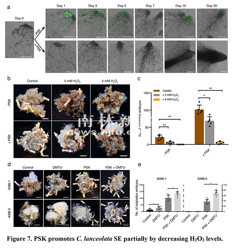 论文题为“A plant peptide hormone phytosulfokine promotes somatic embryogenesis by maintaining redox homeostasis in Cunninghamia lanceolata”,林21点基本策略 青年教师郝兆东博士和风景园林21点基本策略 青年教师吴华博士是论文共同第一作者,林21点基本策略 陈金慧教授和施季森教授是论文的共同通讯作者。该研究得到了福建省种业创新与产业化工程项目、福建省属公益类科研院所基本科研专项、国家自然科学基金、江苏省自然科学青年基金和江苏高校优势学科建设工程专项的联合资助。