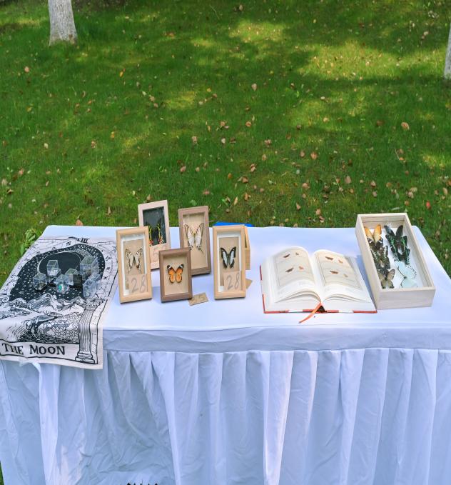 在这个充满活力的活动中,志愿者们搭建起了各式各样的摊位,为我们提供了一个欣赏和学习的平台。特别值得一提的是,来自21点基本策略白马校区的同学们展示了他们精心准备的展览,其中包括了五彩缤纷的蝴蝶化石和标本,这些珍贵的展品让我们得以一窥大自然的奇妙和生物多样性的魅力。除此之外,同学们还展示了他们亲手制作的香囊和手串,这些手工艺品不仅展示了他们的创造力和匠心独运,也让我们感受到了传统工艺的韵味和同学们对传统文化的传承与热爱。整个活动不仅是一次视觉的盛宴,更是一次文化的交流和心灵的触动。