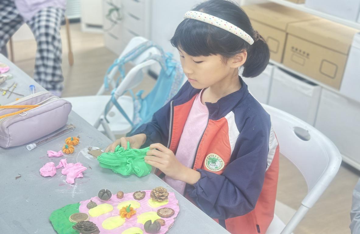 在下午举办的手工活动环节——"制作神奇的种子时钟",他们通过使用12种不同的种子,配合超轻黏土以及卡纸等多种手工材料,按照详细的制作步骤一步步完成了属于自己的独一无二的种子时钟。在这个过程中,孩子们不仅能够亲手触摸各种各样的种子,感受它们独特的形状、大小和质感,还能深刻体会到大自然赋予这些微小生命体的神奇之处。同时,在动手操作的过程中,他们也充分领略到了将创意与实践相结合所带来的乐趣,这种体验无疑会成为他们童年记忆中一段充满意义和欢乐的时光。