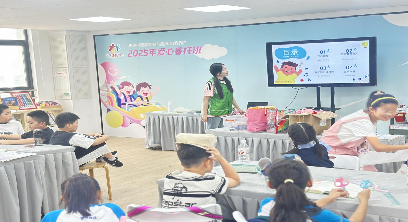 活动的最后一天上午,志愿者们开展了"花与种子知识课",通过PPT讲解了花的结构、繁殖方式以及种子的形成过程。孩子们还观看了各种美丽的花卉图片和种子标本,了解不同花卉和种子的特点。