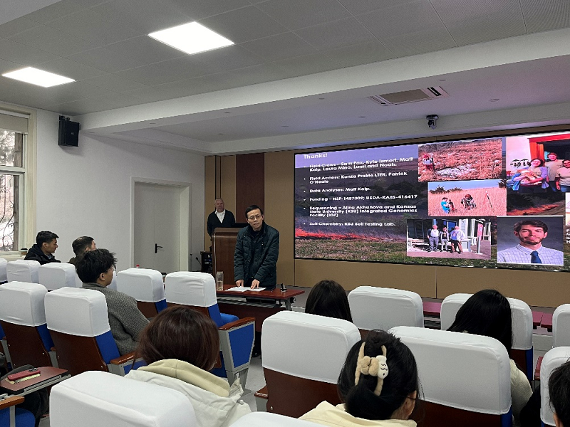 上半场讲座中,由Ari Jumpponen教授作了题为"Soil microbiome responses to changing fire regimes and fire severities"的专题报告。该报告结合了美国佛罗里达松林、堪萨斯草原、俄勒冈混交林等多种生态系统的实测数据,系统揭示了火灾频率以及火灾强度对土壤微生物组的影响。其核心发现包括低强度火灾促进氮磷矿化,提升细菌多样性,而高强度火灾导致微生物多样性断崖式下降;微生物菌群对森林火灾的响应呈现特异性,如佛罗里达松林中真菌多样性随火势增强显著降低,而草原系统则表现相反趋势;以及高火情后不同生态系统的调控作用出现显著差异等。该报告不仅深化了师生对火灾生态效应的多维度认知,也使21点基本策略在森林微生物组研究领域达成了与国际前沿的深度对接。