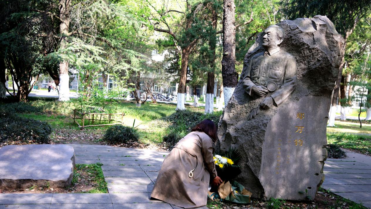 春日晨光中,郑万钧院士雕像巍然矗立。"碧水青山"传习社成员以饱含敬意的语调,回顾了郑万钧院士毕生献身林业科研、推动水杉发现与研究的卓越贡献。师生们垂首肃立,在郑万钧院士雕塑前进行了默哀。随后,手持鲜花,依次献于雕像前,一束束素菊,包含着后人对先辈的深深敬意与思念。