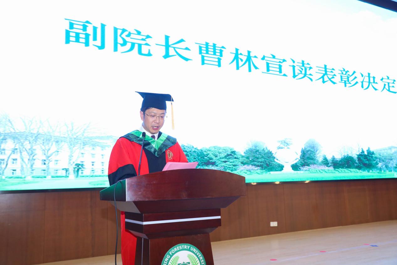 典礼在庄严的国歌声中拉开帷幕,姜姜院长致辞勉励在场所有毕业生,他希望毕业生们能够敢想敢为,不断锤炼自身本领,担当使命,始终秉承"诚朴雄伟,树木树人"的校训,把论文写在祖国大地之上,带着林业人的烙印奔赴山海。